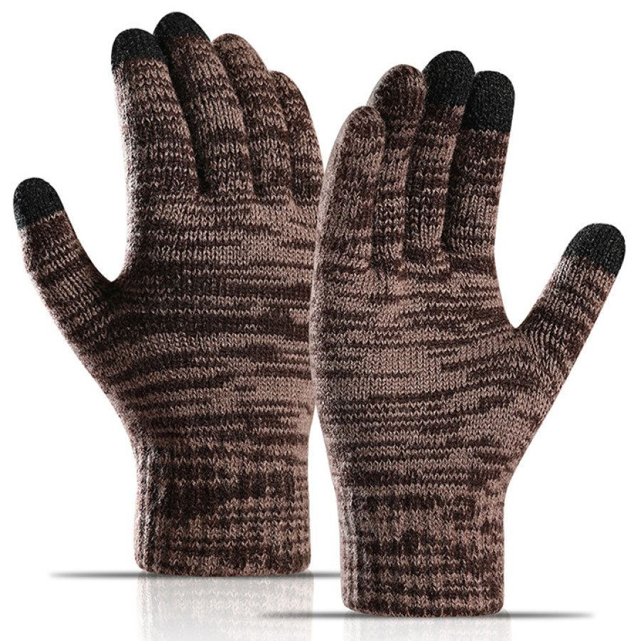 Men's Outdoor Fleece Warm Touch Screen Knit Gloves