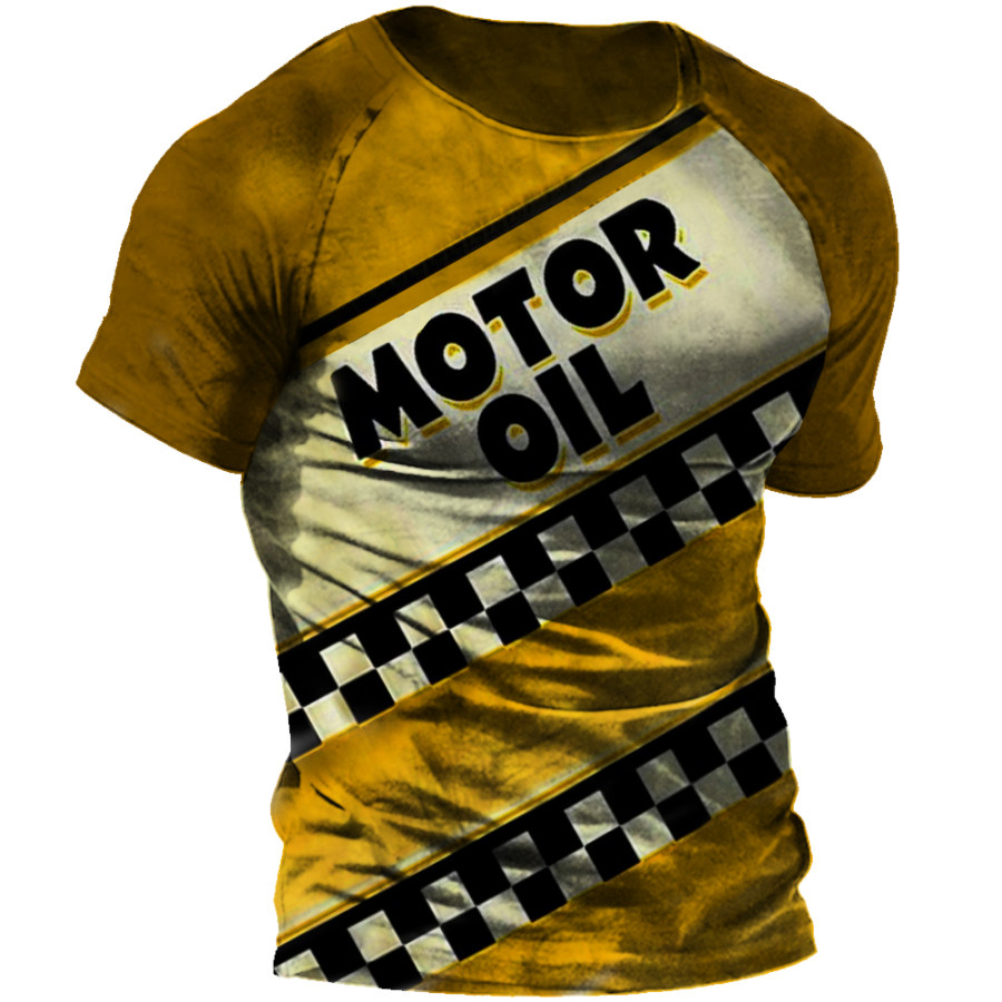 Men's Outdoor Motor Oil Racing Stripe Print T-Shirt