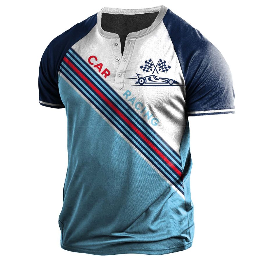 Men's Outdoor Racing Stripes Henley T-Shirt