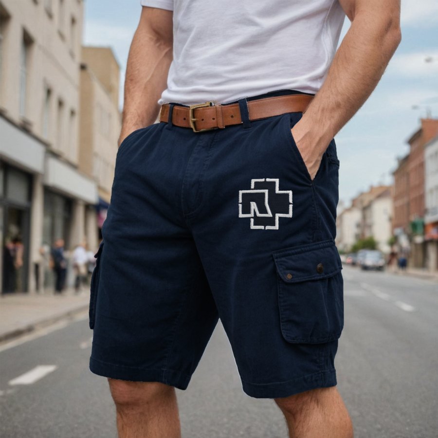 Men's Outdoor Vintage Rammstein Embroidered Pocket Cargo Shorts