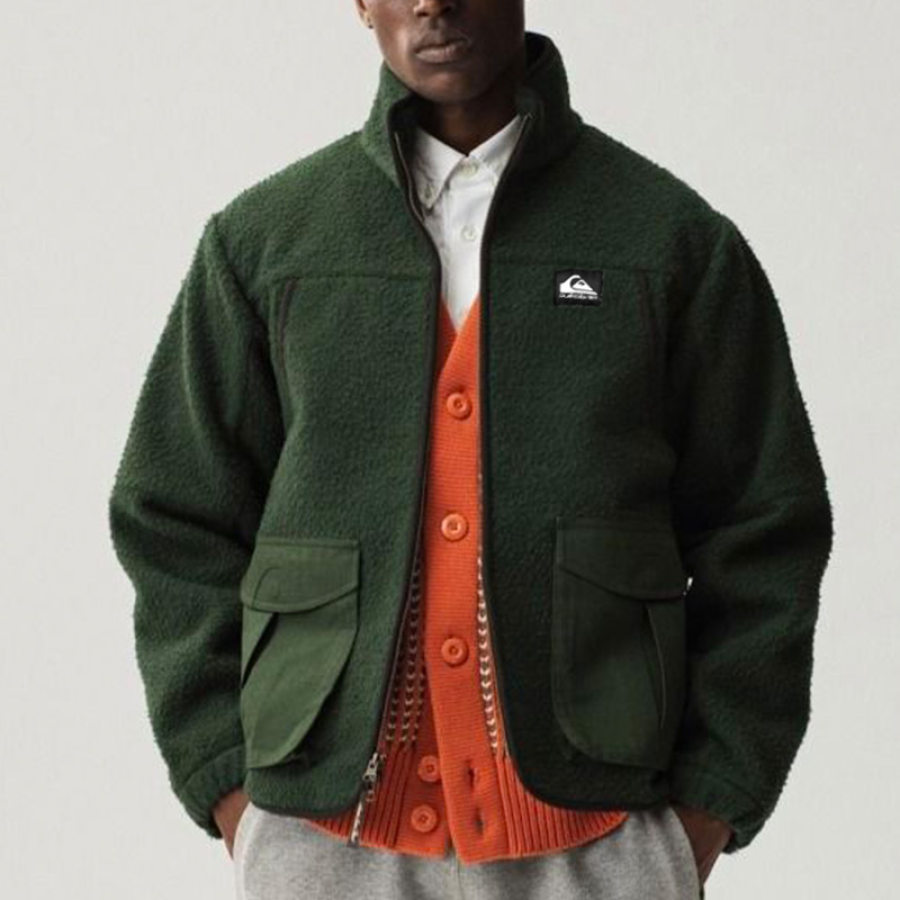 Men's Oversized Fleece Jacket Cargo Pockets