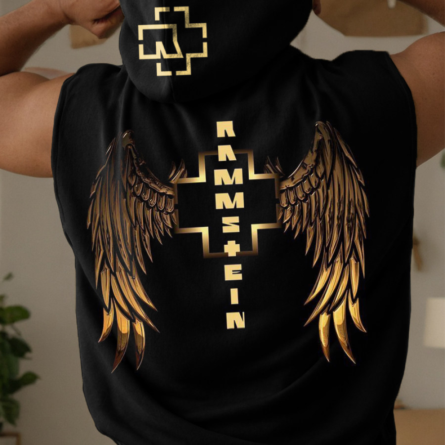 tank top,men's rammstein vintage pattern print sleeveless hooded tank top