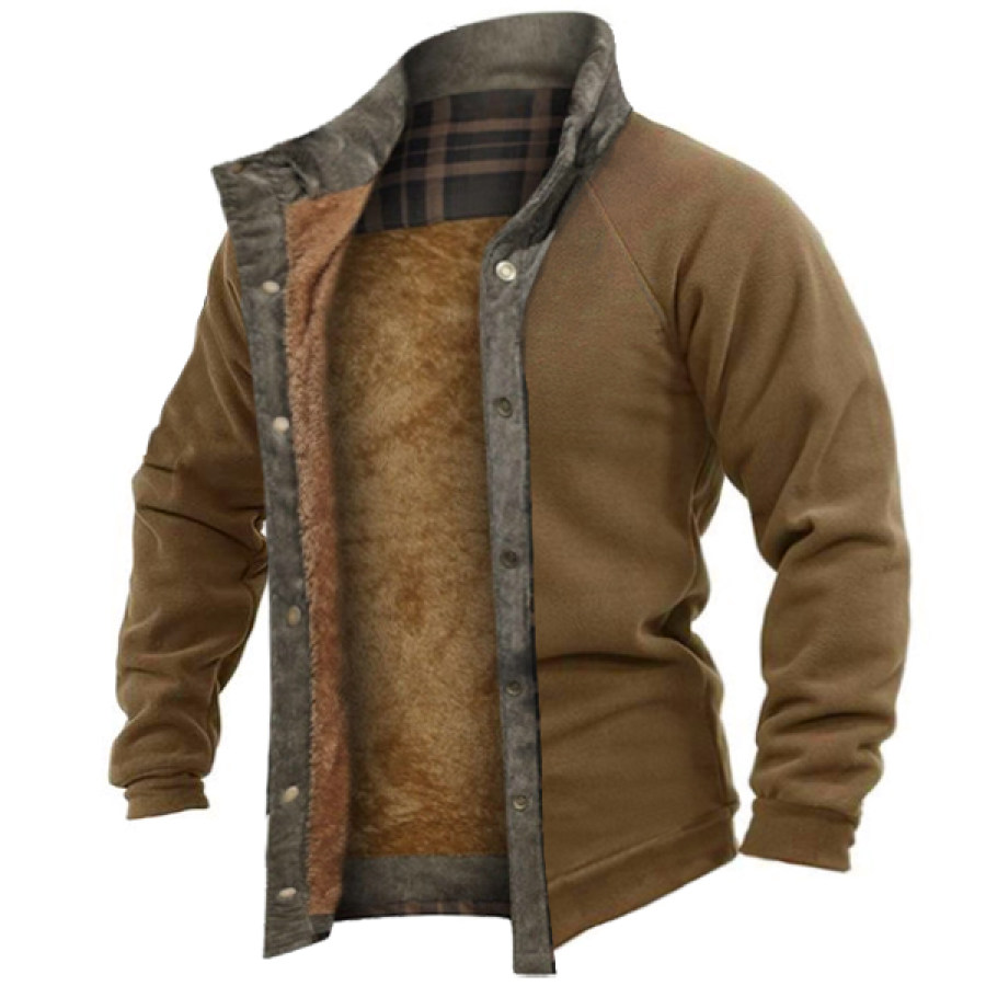 shirt jacs,men's retro check pattern stitching warm wanderer fleece jacket