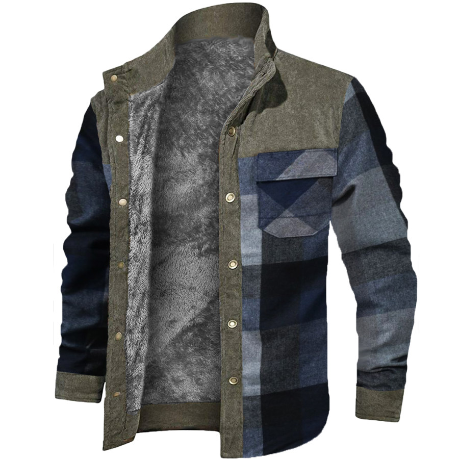 shirt jacs,men's retro check pattern stitching warm wanderer jacket