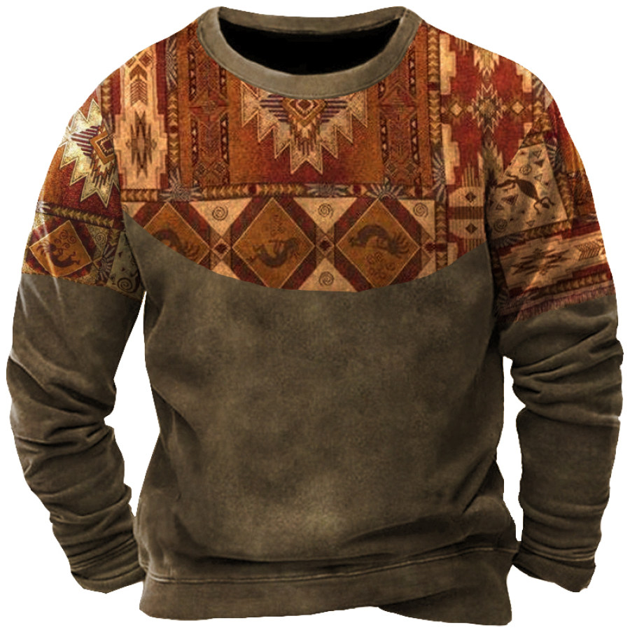 Men's Retro Ethnic Geometric Pattern Colorblock Sweatshirt