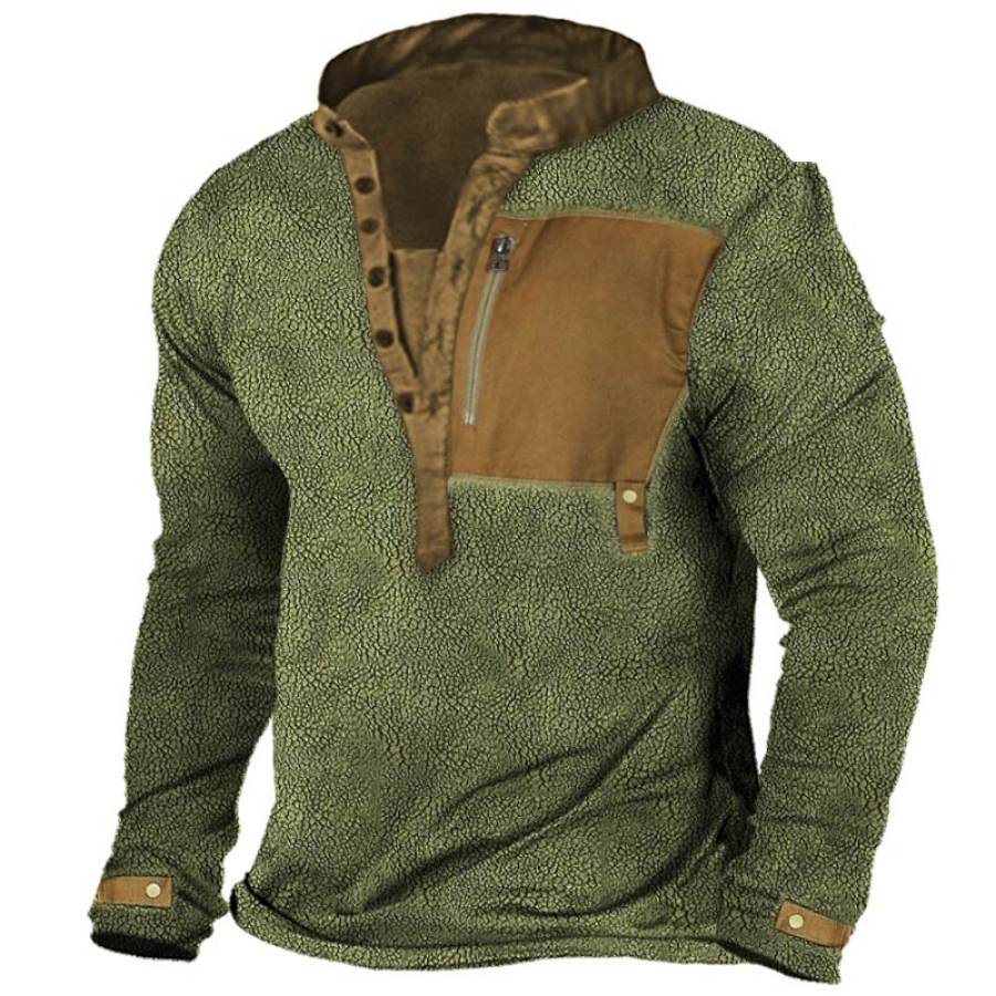 Men's Retro Outdoor Fleece Warm Tactical Henley T-Shirt