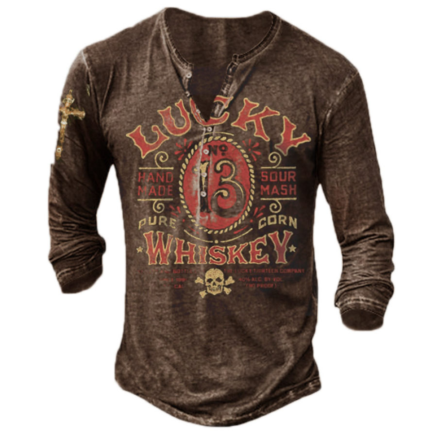 henleys,men's retro print long sleeve t-shirt