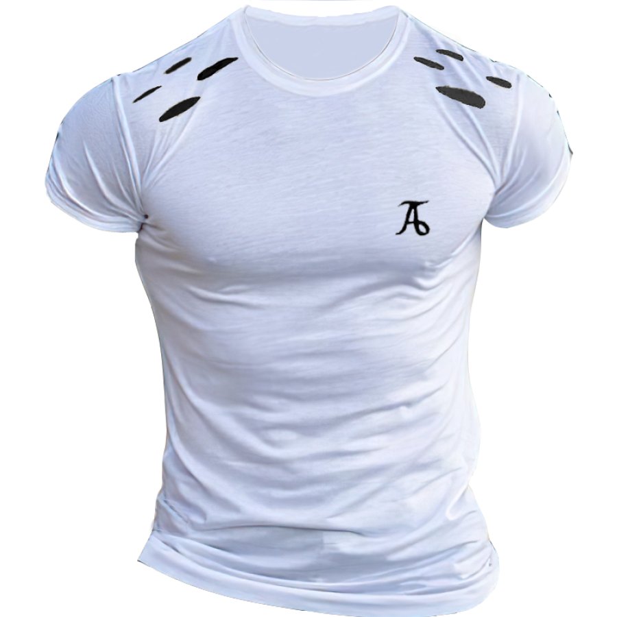 Men's Retro Ripped Casual Solid Color T-Shirt