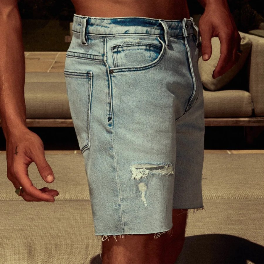 Men's Retro Washed Ripped Cropped Slim Denim Shorts Jorts