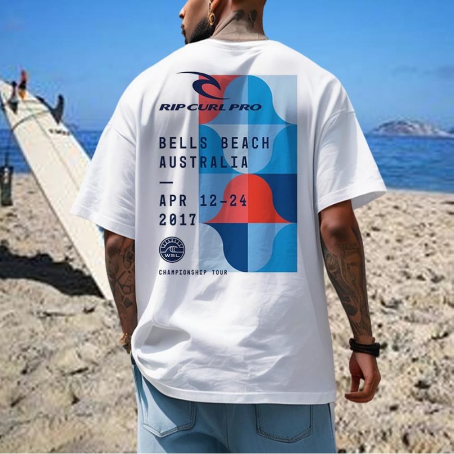 Men's Rip Curl Surf Poster Beach Loose Short Sleeve Oversized T-Shirt