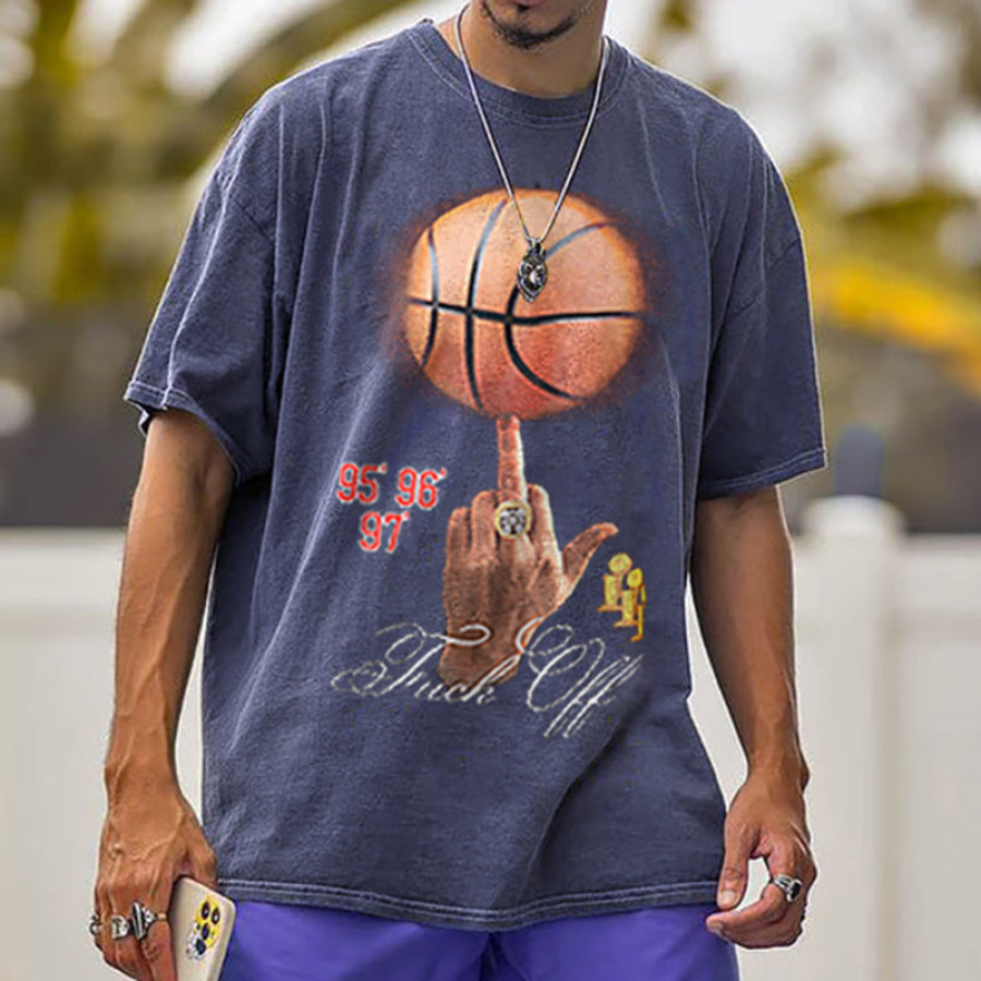 Men's Rotating Basketball Print Casual Short Sleeve T-Shirt