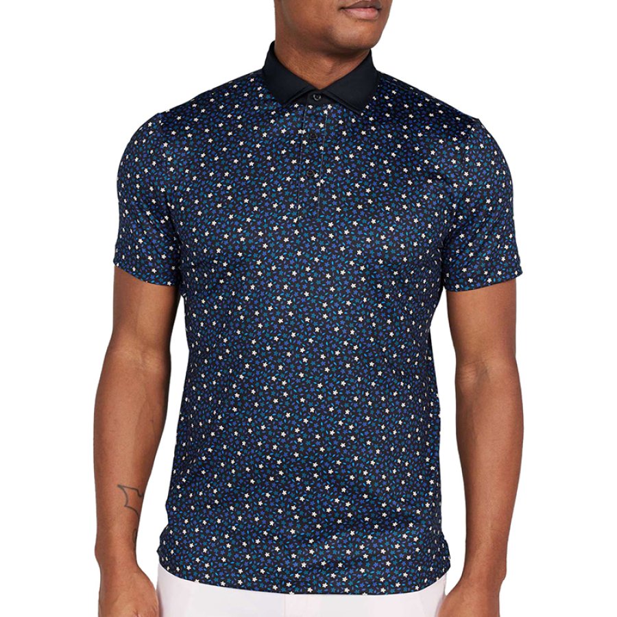 t-shirts,men's small floral pattern printed polo shirt