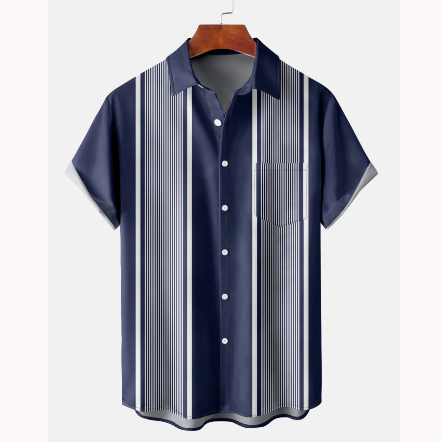Men's Striped Short Sleeve Beach Shirt