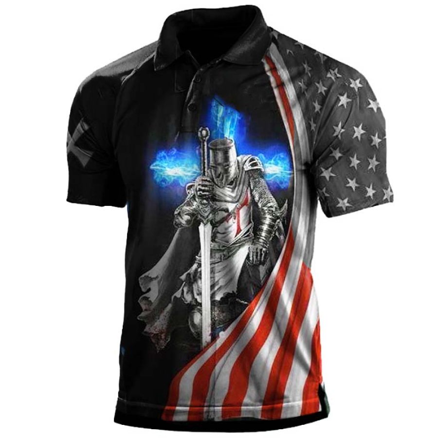 tees & shirts,men's templar patchwork flag print henley shirt