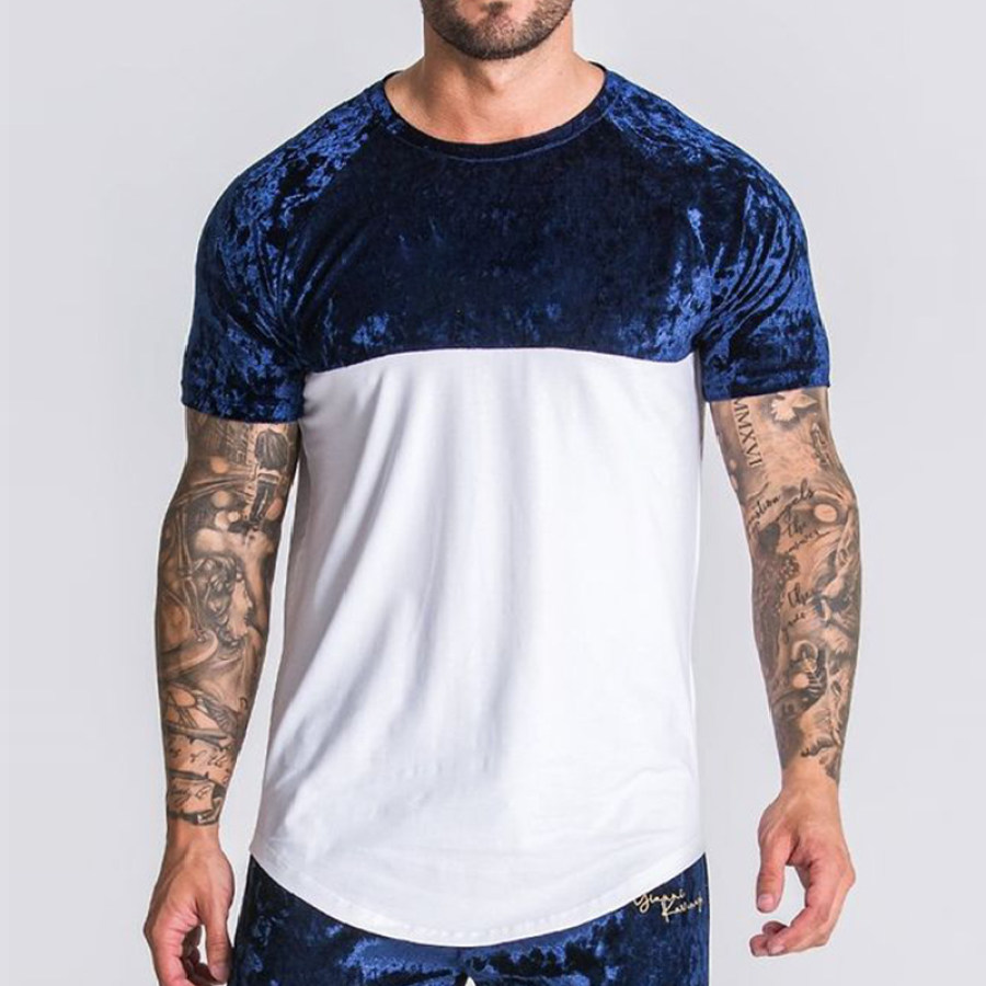Men's Velvet Stitching Color Contrast Round Neck T-shirt