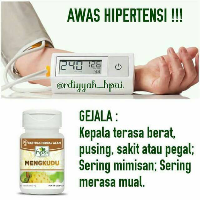 Mengkudu Kapsul HPAI herba yang terbuat dari buah mengkudu pilihan yang mempunyai khasiat meringankan gejala tekanan darah tinggi hipertensi.