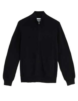 This soft cashmere jacket from our Autograph collection gives an effortlessly casual look. The zip-through design has a high funnel neck to keep you snug. A ribbed texture brings a luxurious finish. Autograph: premium investment pieces featuring contemporary cuts and refined finishing touches.