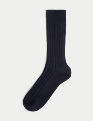 Mens Autograph Cashmere Rich Ribbed Socks - Navy, Navy