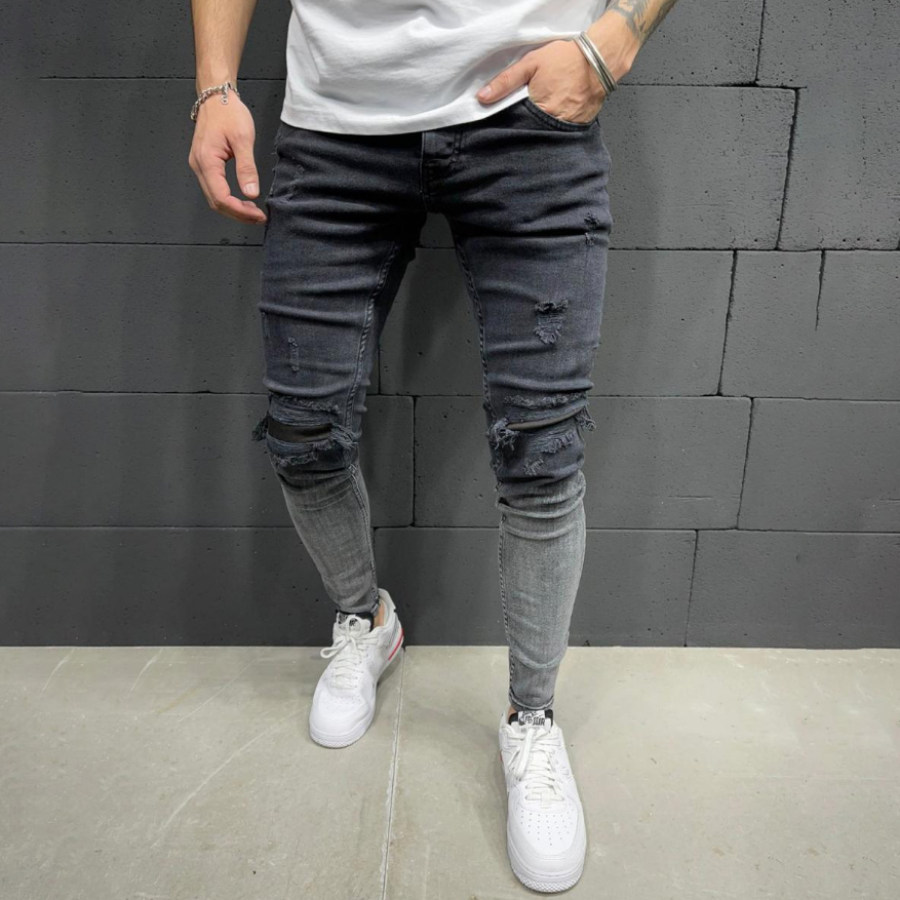 jeans,mens contrasting hip hop stiletto jeans