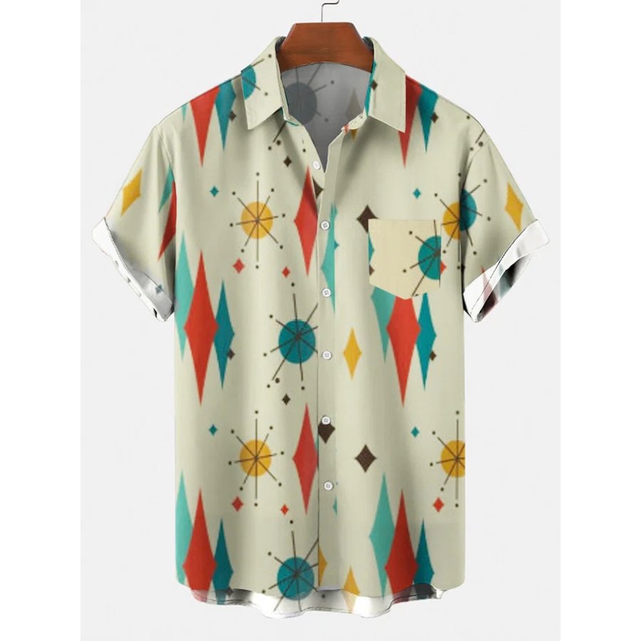 Mens Geometric Abstract Printed Shirt Collar Shirts