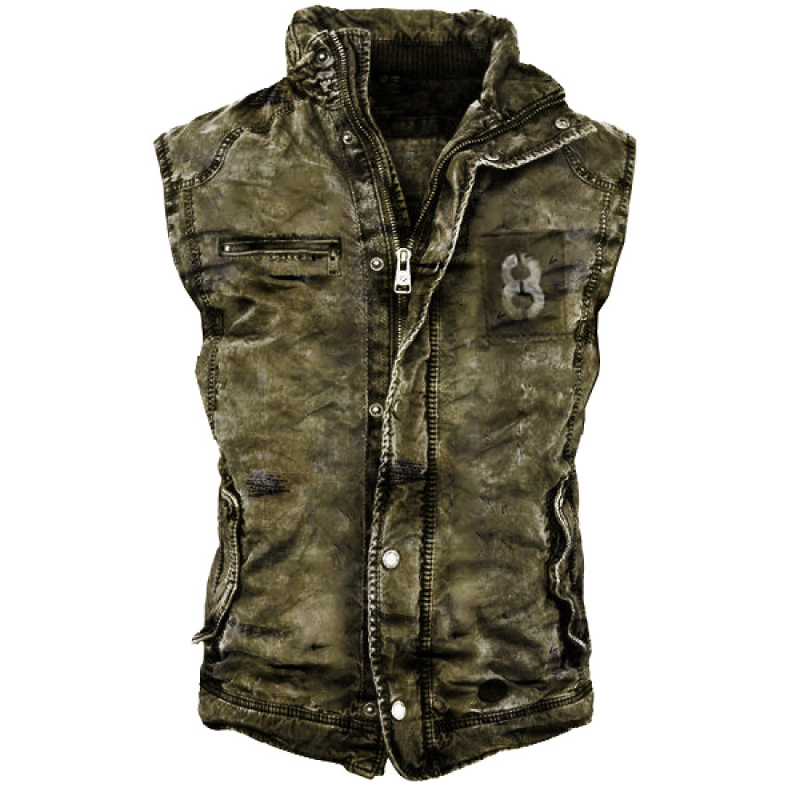 Mens Jacket Retro Washed Warm Jacket Vest