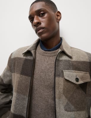 Layer up in style with this smart, checked short jacket. It's made to a comfy regular fit, with a neat collar and a zip-through fastening. Buttons feature at the cuffs and the single chest pocket, which brings a casual utility-inspired touch. A lining ensures a smooth feel. n n M&S Collection: easy-to-wear wardrobe staples that combine classic and contemporary styles.