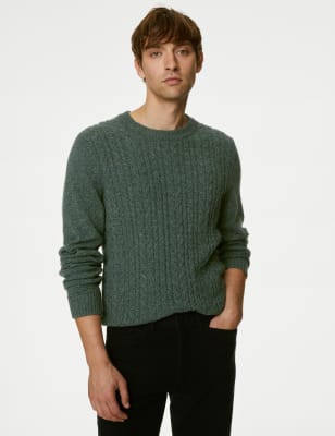 With its chunky cable knit design, this lambswool-blend jumper is a versatile style classic. The soft and breathable yarn offers easy-wearing comfort and warmth. Ribbing at the crew neck, hem and cuffs neatly finishes the design. n M&S Collection: easy-to-wear wardrobe staples that combine classic and contemporary styles.