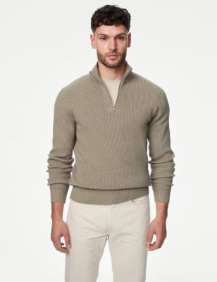 Keep it cool, contemporary and casual with this cosy cotton-blend jumper. The half-zip funnel neck ensures you feel extra warm in cold weather. Snug-fitting stretchy ribbed trims complete the understated design of this cold-weather layering classic.n n M&S Collection: easy-to-wear wardrobe staples that combine classic and contemporary styles.