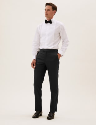 These pure wool suit trousers were made for special occasions. Cut in a regular fit with a flat front for a traditional look, they come complete with smooth satin detailing around the waist and down the sides. Waist adjusters make for the perfect feel. M&S Collection: easy-to-wear wardrobe staples that combine classic and contemporary styles.