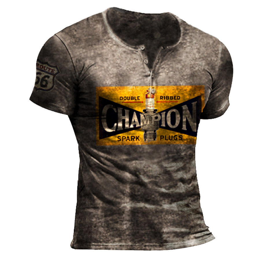 Mens Retro Fashion Spark Plug Print Outdoor Comfortable T-shirt