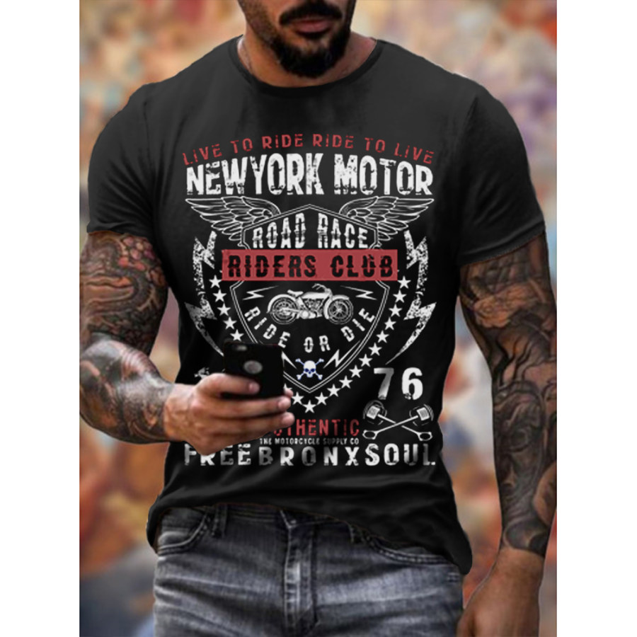 t-shirts,mens retro motorcycle riding printed t-shirt