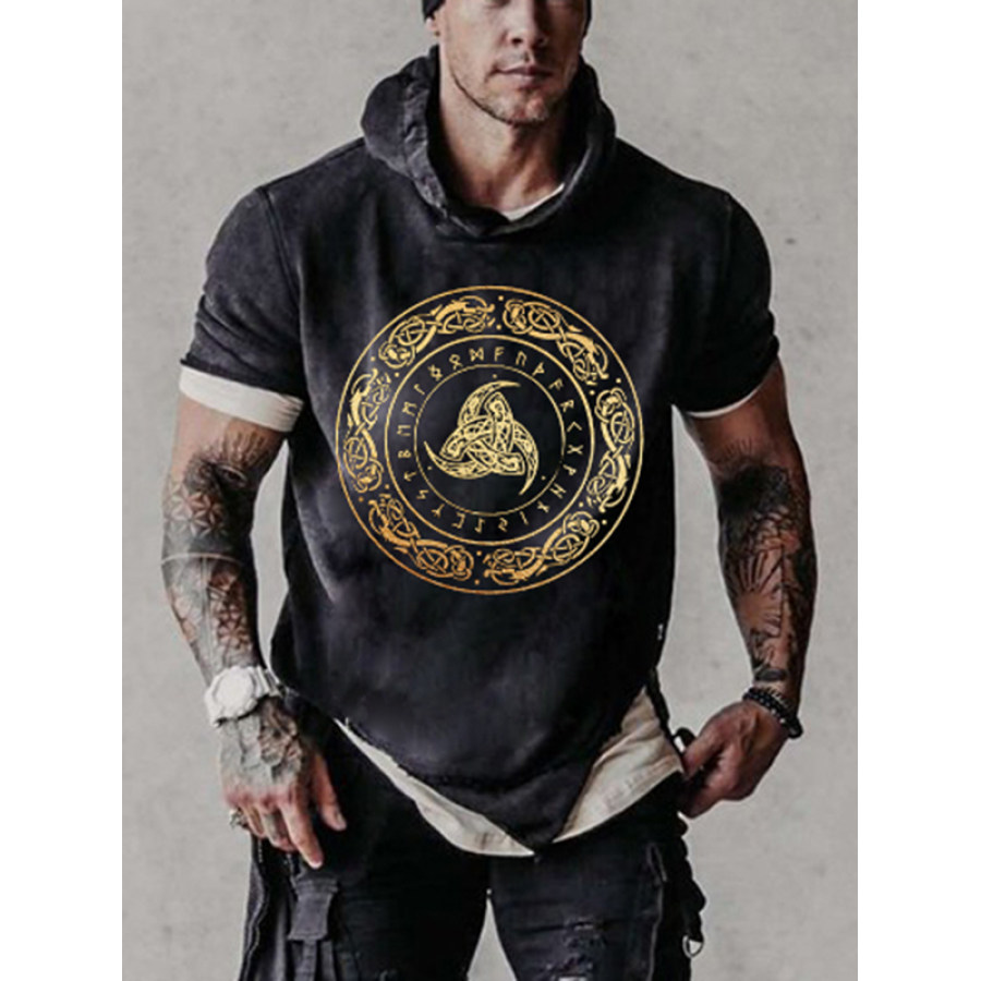 tees & shirts,mens viking compass print cap collar t-shirt
