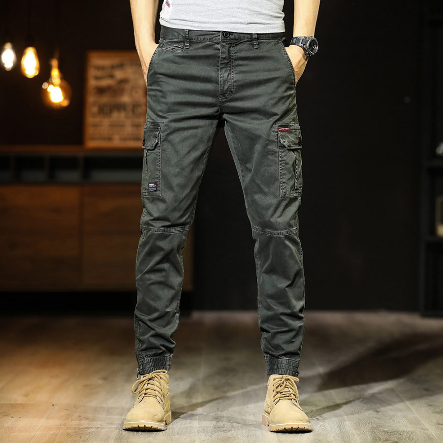 cargo pants,mens wear-resistant solid color cargo pants