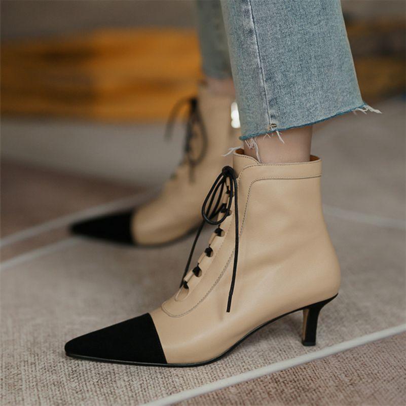 Meotina Женщины Подлинная кожа Ботильоны Дети Замша Тонкий Высокий Каблук Заостренный носок Сапоги Молния Шнуровка Вверх Женские сапоги Осень Зима