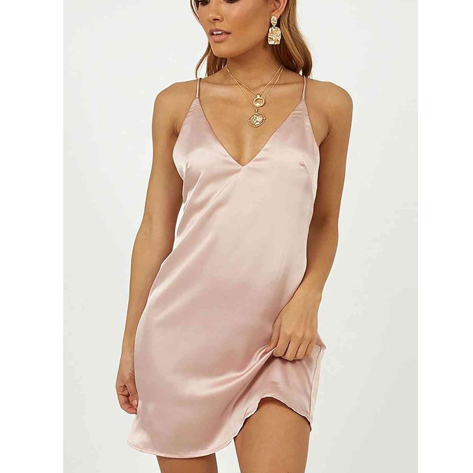 Merry See Женская шикарная короткая атласная ночная рубашка розового цвета Ms2346