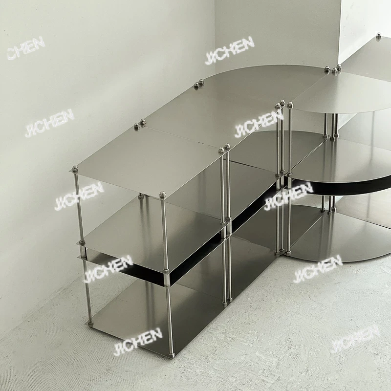 Metal Modular Storage Rack, Free-Standing Stainless Steel Shelf, Side Table, Wall-Edge Organizer,Multi-Purpose Storage for Books