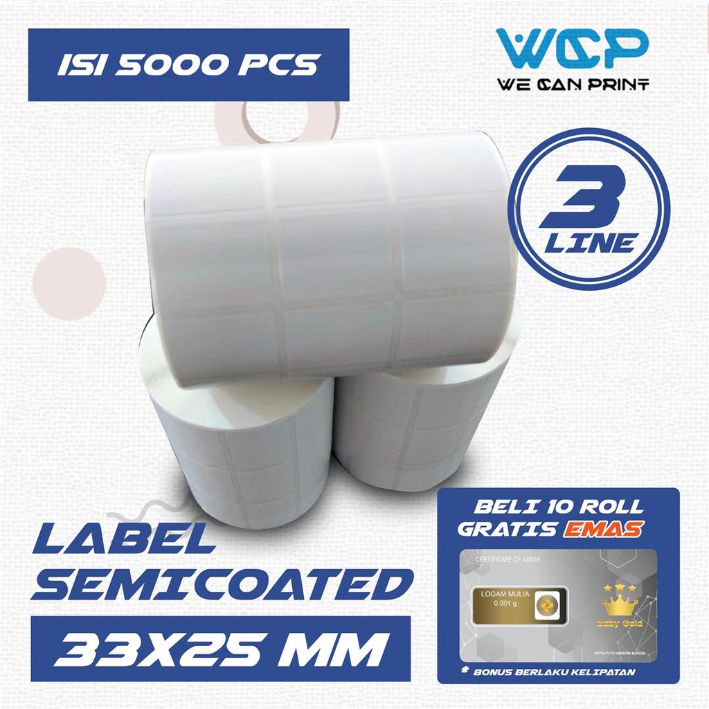 Mi Label Semicoated 33X25MM Kertas Label Sticker Semicoated 33X25 MM (3 LINE) 5000 PCS