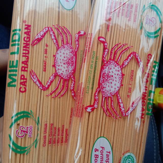 Mi lidi cap Kepiting, tanpa bahan Pemgawet dan tidak mengandung borak.