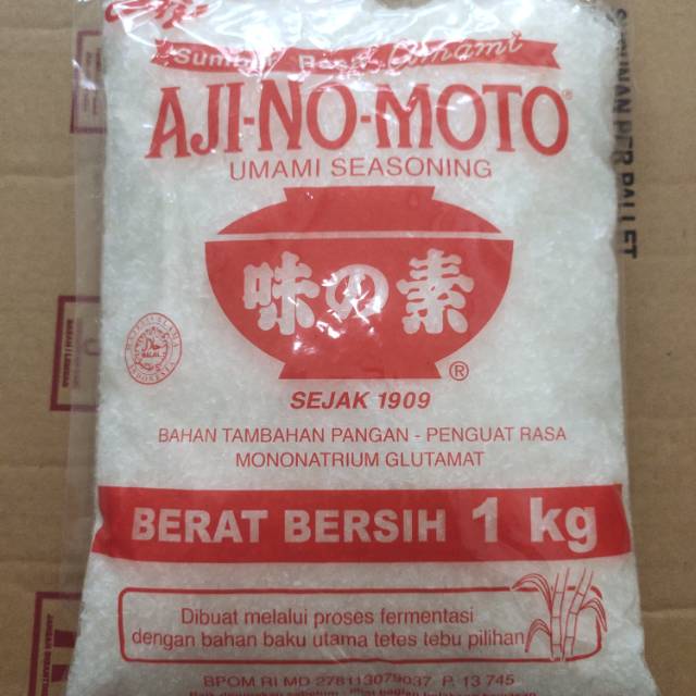 Ajinomoto dikenal sejak 1909. Dibuat melalui proses fermentasi dengan bahan baku utama tetes tebu pilihan. Berat netto 1000 Gr. butiran BESAR.