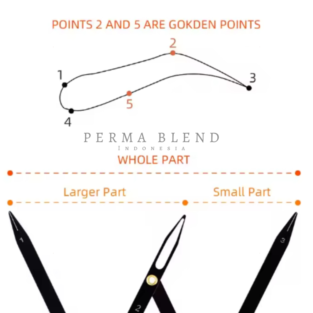 2.Rasio emas penguasa microblading jangka lengkung gunakan untuk mengukur, mencari dan bentuk sama dengan alis di kedua sisi wajah. Di alis pengukuran alis posisi dan alis desain.
