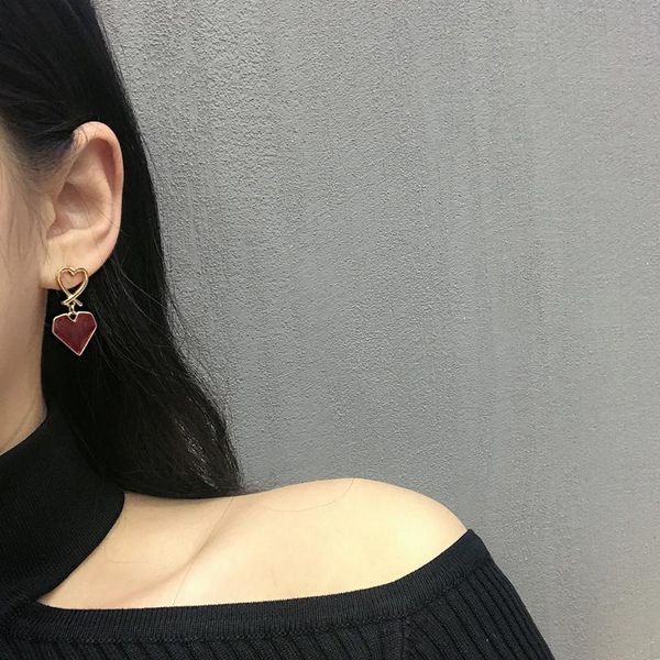 stud bilandi s925 needle fashion jewelry red earrings selling pretty enamel hollow double sweet heart for women gifts, Golden;silver