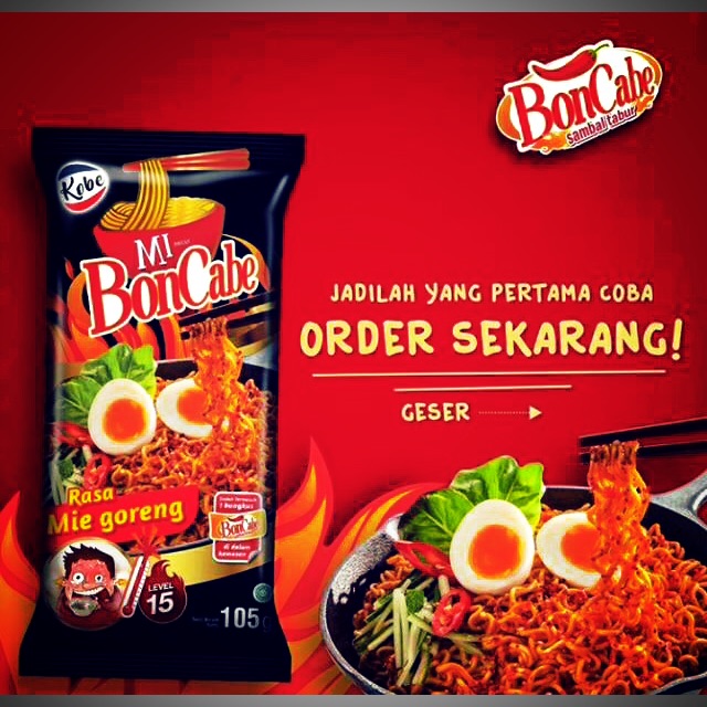 Mie bon cabe Mie goreng yang rasanya rasa bubuk bon cabe , ini produk baru yg baru launching dari Merk bon cabe, lagi viral banget di kalangan youtubers ataupun selebgram, Mie boncabe di dalam Mie nya sudah mengandung bubuk cabe, bumbu kecapnya juga pedas dan ditambah bubuk boncabe mini level 15, yuk di order belum ada di supermarket kapan lagi makan Mie enak pedes nya engga nyakitin tenggorokan