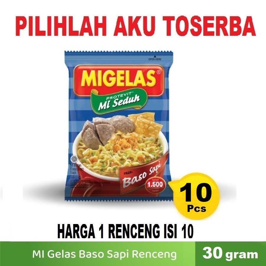 Mie Gelas Migelas Rasa Baso Sapi @30 Gr - (HARGA 1 Renceng isi 10 Pcs)