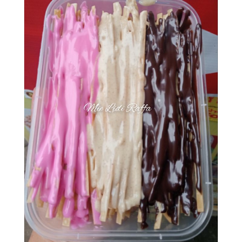 Mie Lidi renyah dengan toping varian rasa manis di mix 3 Rasa .