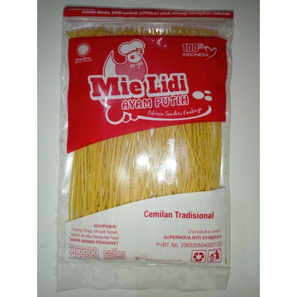 Mie lidi adalah jajan jadul tahun 90 an yang masih melegenda sampe sekarang,mie lidi ini cocok buat cemilan disaat anda santai, bernostalgia dengan mie lidi jaman SD ini dijamin uenakk poll.. Pilihan rasa : 1.Asin 2.Pedas