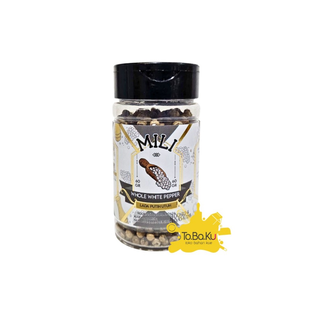 Mili Lada Putih Utuh merupakan rempah asli Indonesia yang serbaguna disukai mancanegara,rasakan pedasnya lada putih murni. Kemasan : Botol 60gr.