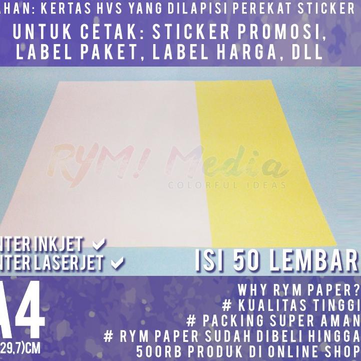 Stok Terbaru - Sticker Hvs A4 Isi 50 Lembar / Kertas Stiker Inkjet Doff Matte A4