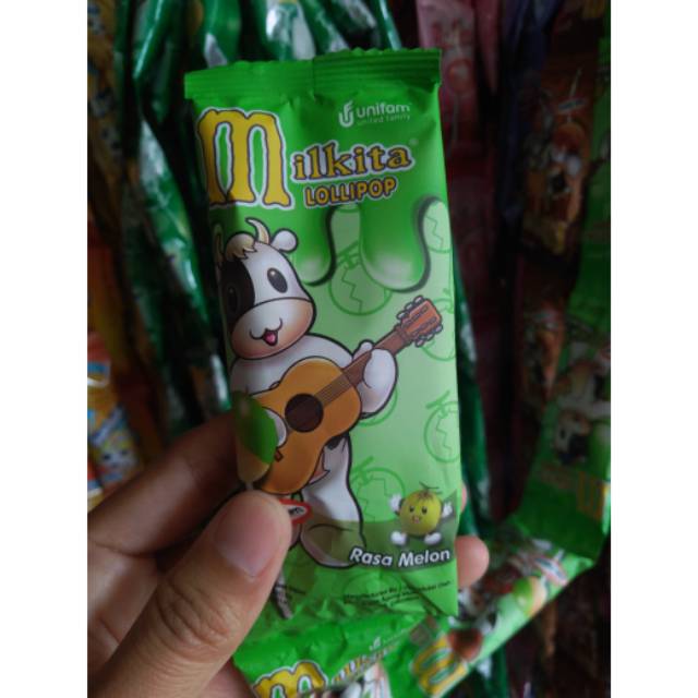 Permen lollipop susu milkita rasa melon, dijual rentengan isi 10 pcs