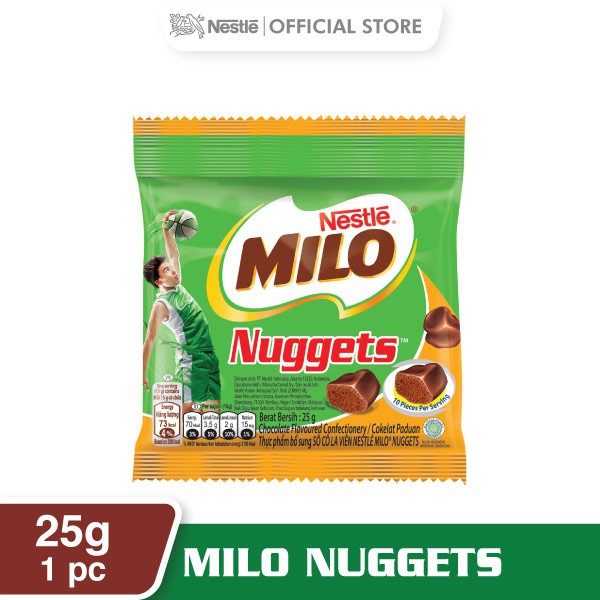 Milo Nuggets 25gr merupakan salah satu varian cokelat nugget dari Nestle Milo. Dikemas dalam plastik yang higienis, cemilan ini dibuat dalam bentuk kecil yang mudah untuk digigit dan dikunyah. Rasa crunchy malt yang lezat membuat Milo Nuggets praktis untuk menemani aktivitas Anda.