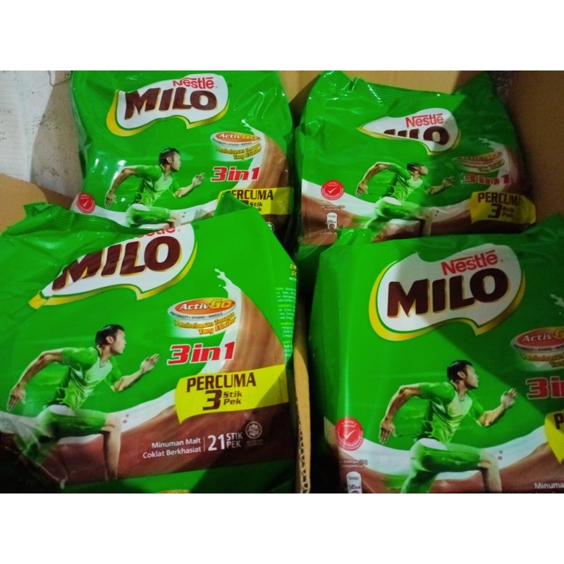 Milo dengan kemasan stick sebanyak 21 stick yang bisa dibawa kemana2